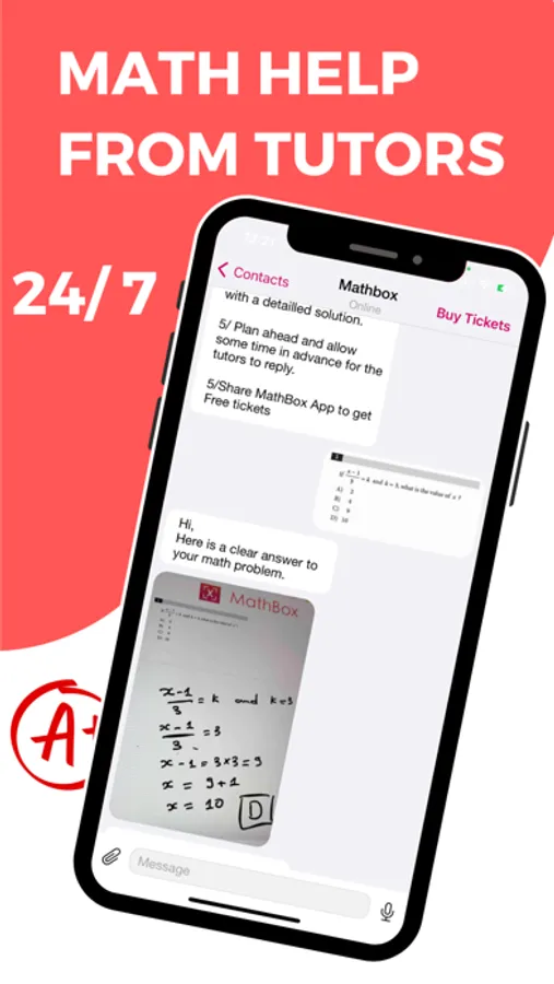 ● You upload a photo of your math problem and a Mathbox math tutor will solve it with a clear explanation helping learning better.