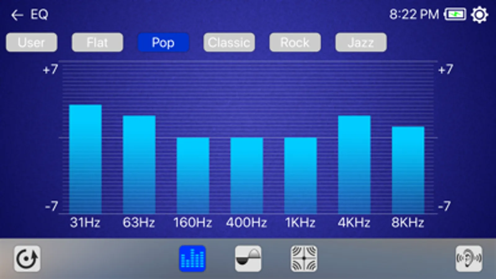 7 Band tone control, preset various EQ effect; front, back, left, right speaker control.