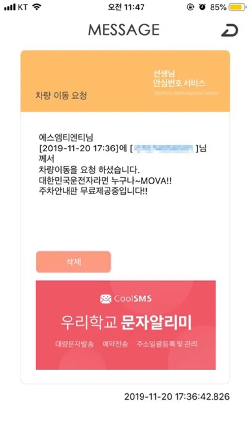차량용은 상대방이 내 안심번호로 전화를 거는 즉시 알림음과 메세지로 신속하게 전달해 드리며