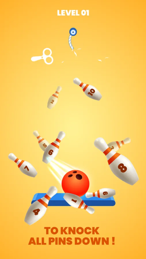 Rope and bowling, interesting combination, right? Slash the rope, roll the ball hit all bowling.