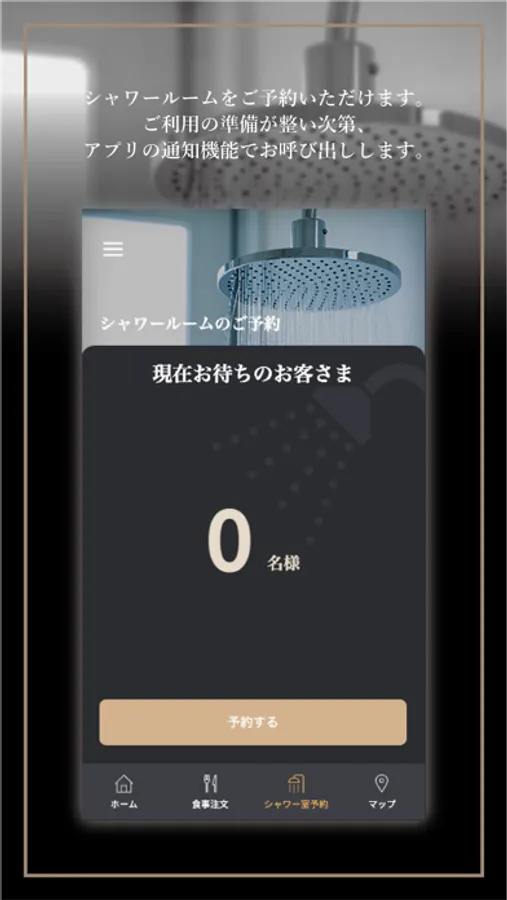When the shower room becomes available, we will send notifications to your mobile device.