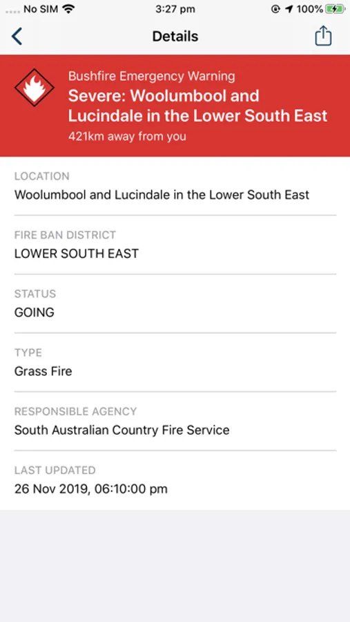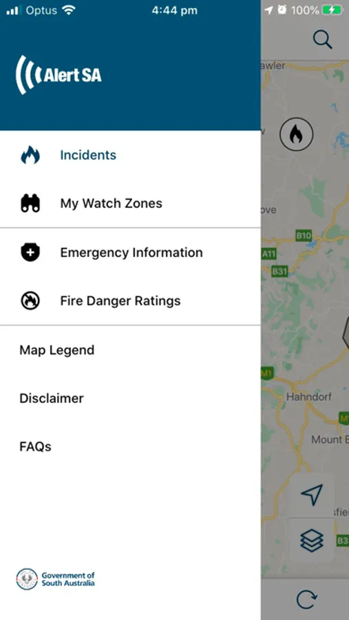 The Alert SA App is an official Mobile Application of the South Australian Fire and Emergency Services Commission (SAFECOM) and provides users with timely, relevant bushfire information in South Australia. The App displays bushfire warnings and alerts, Fire Danger Ratings and Total Fire Bans, with users able to create up to 10 Watch Zones, specifying areas of interest to them. Users are encouraged not to rely on one source of information during bushfires, and to access other channels such as www.cfs.sa.gov.au, CFS Facebook and Twitter, a battery powered radio and the Bushfire Information Hotline: 1800 362 361 (TTY 133 677).