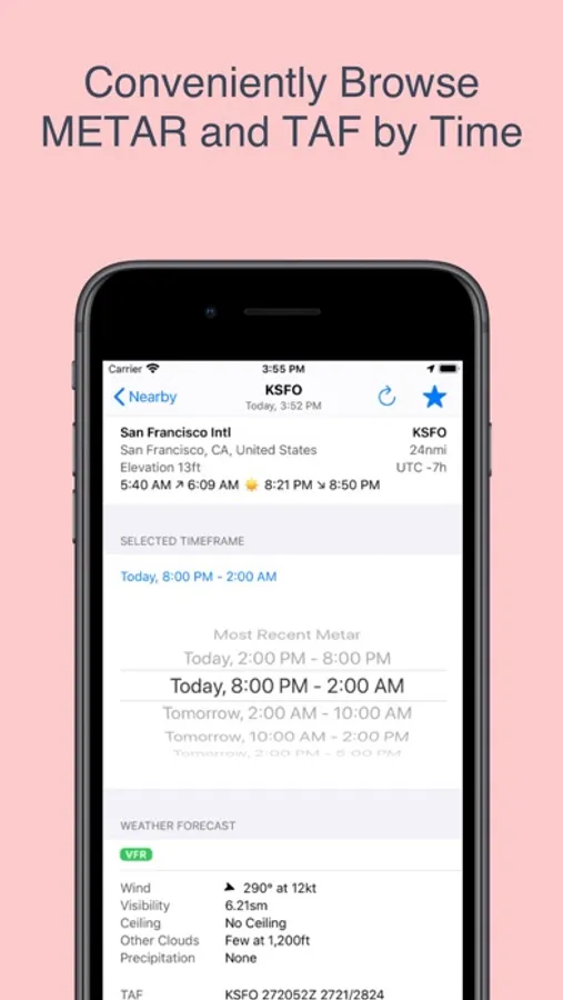 - Conveniently browse METAR and TAF by time to quickly find the correct report or forecast.