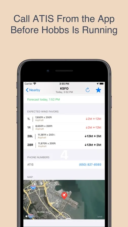 - Call ATIS directly from within the app and save time before the hobbs meter is running