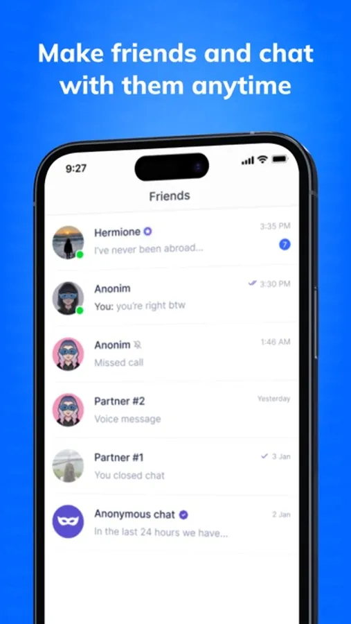 Download the app and you are good to go! Enter your nickname and start a dialog right away.