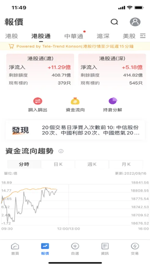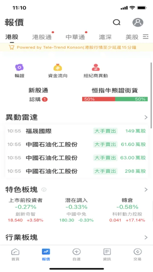 2. 報價行情 – 免費港、滬、深股報價,行業及個股資金流向行情