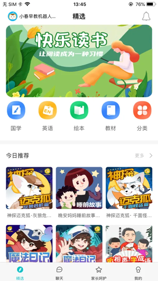 科小宝App是配合智能机器人使用的一款应用,家长可以通过手机,为宝宝点播益智音频资源,进行音视频通话。