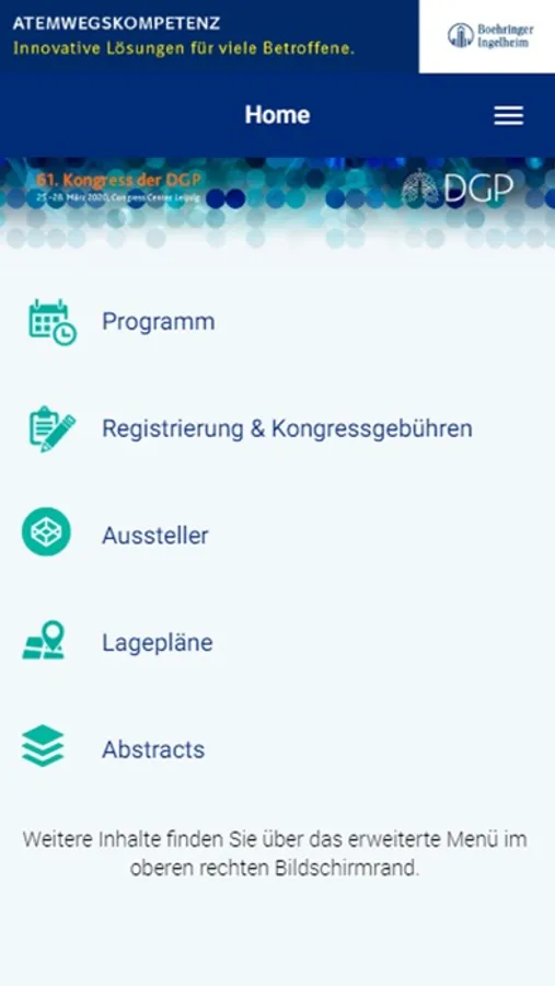 Interaktive App zum Pneumologiekongress und parallel stattfindenden Industrieforum 2020 in Leipzig. Mit der Kongress App erhalten Sie alle Informationen sowie Programmänderungen schnell und bequem auf Ihr Smartphone oder Tablet. Stellen Sie sich Ihre eigenen Favoriten für den Besuch des Industrieforums zusammen, einen persönlichen Programmplan und nehmen Sie am Voting der TED-Präsentationen teil! Die integrierte Suchfunktion ermöglichen ein schnelles Finden von Sponsoren, Vorträgen oder Referenten.