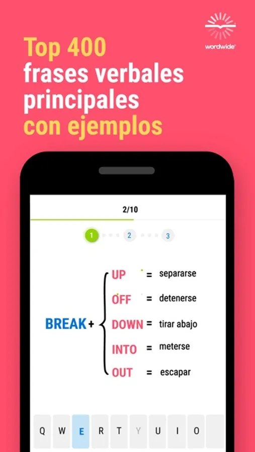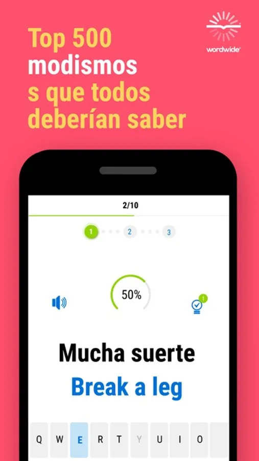 "Worldwide es una aplicación innovadora para aprender inglés creada por las mentes brillantes que desarrollaron ""3000 Words"", que ya tiene más de dos millones de descargas. Analizamos y tuvimos en cuenta todas las recomendaciones que nos enviaron los usuarios y creamos una aplicación revolucionaria que ofrece una manera increíblemente eficaz de estudiar inglés.