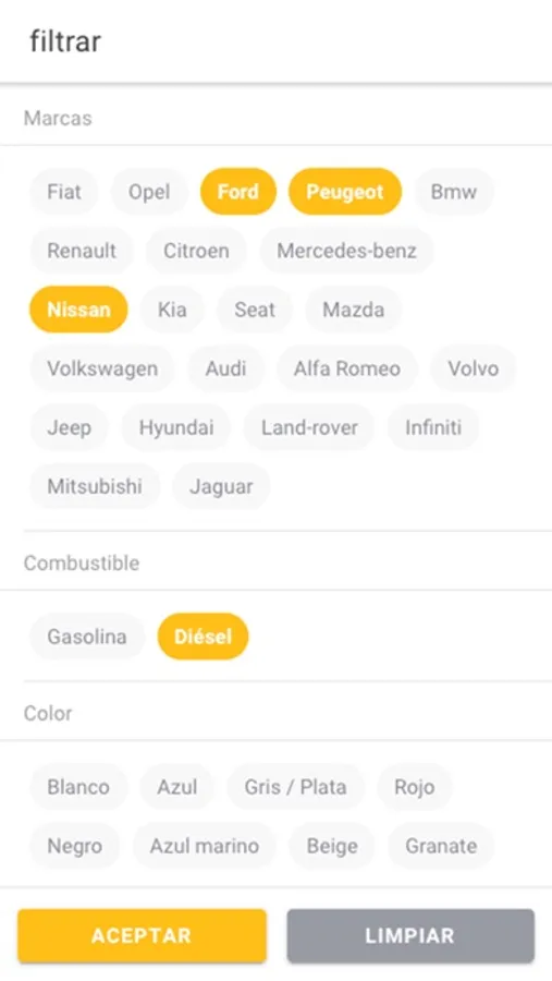 - Puedes filtrar por modelo, precio, año o marca de coche para encontrar más fácilmente el vehículo que buscas.