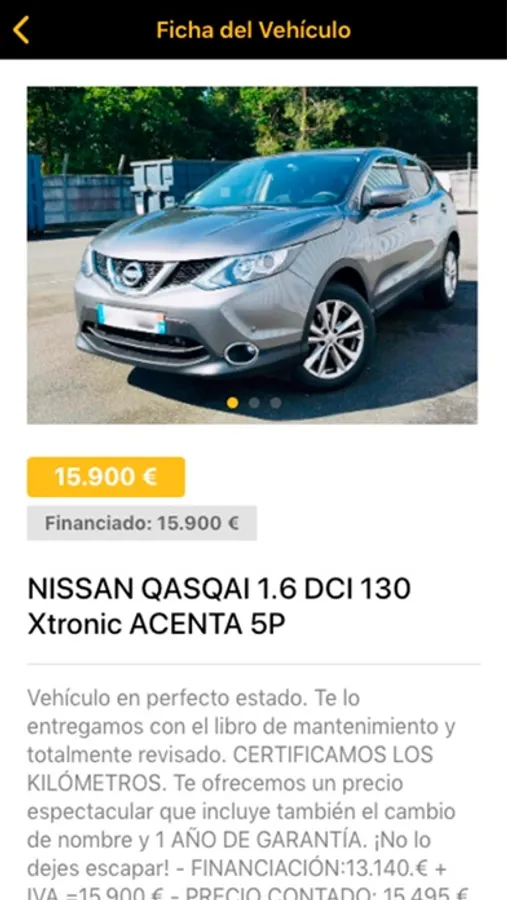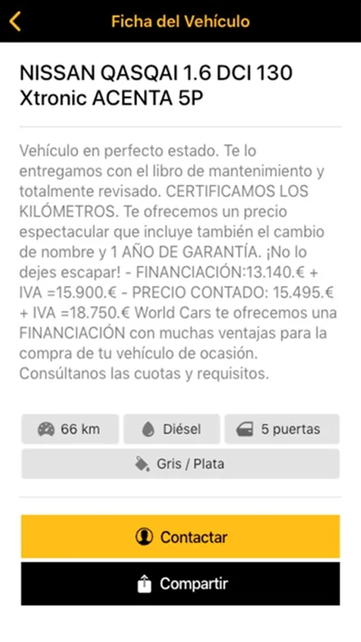 - Consulta la ficha del vehículo y contacta directamente con nosotros para obtener más detalles. Además, podrás compartir el vehículo a tus conocidos para que te den su opinión.