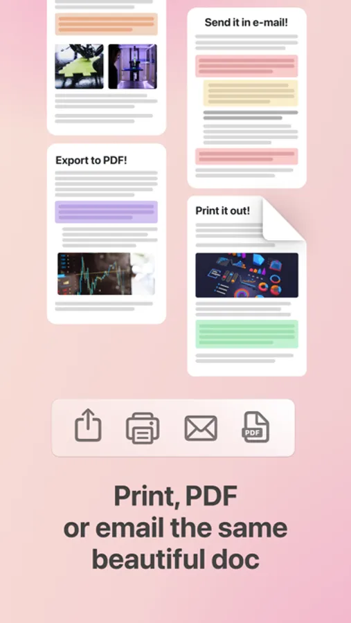 Export your documents with ease in multiple formats, ensuring your work is accessible wherever it's needed. Whether it's Email, Markdown, PDF, or print, your docs will always look as good as they do in Craft — no more broken layouts!