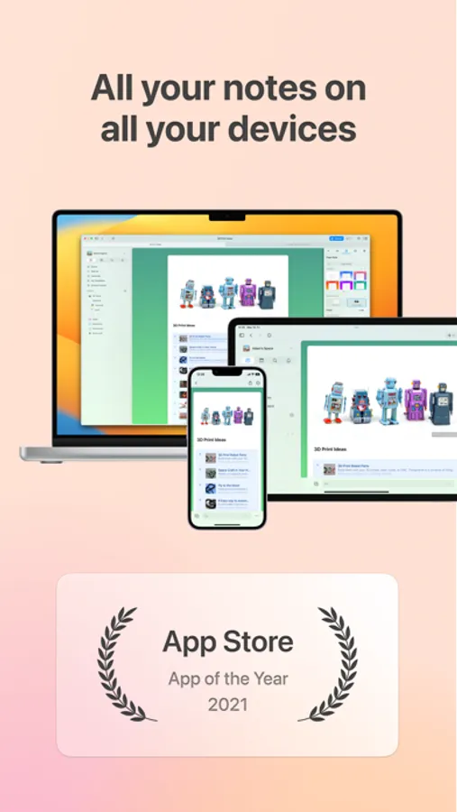 Your documents are stored on your device so you can keep working, even when you're offline. All your changes sync automatically when you reconnect. Craft works on iPhone, iPad and Mac and your notes sync between all your devices effortlessly — perfect for working on the go.