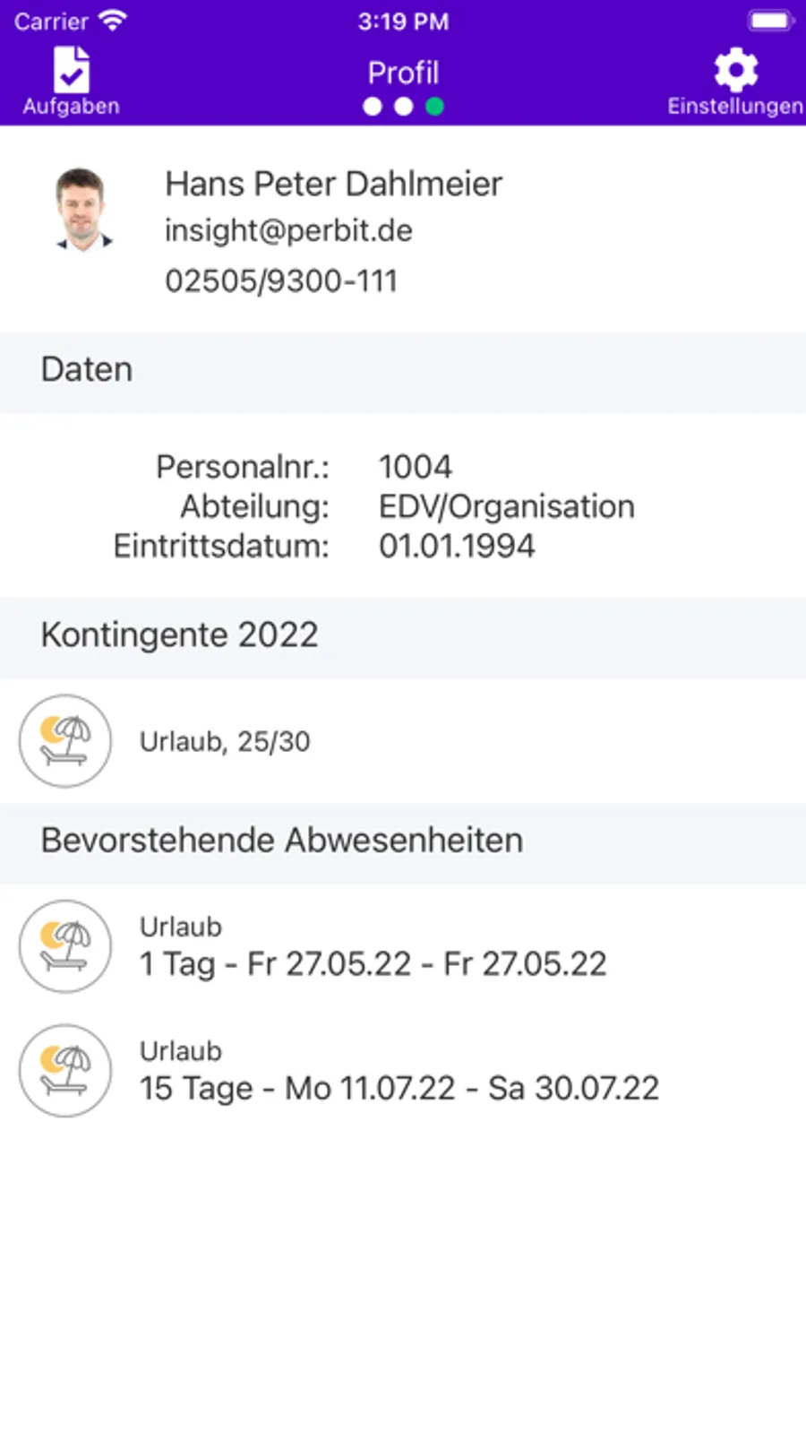 • Ortsunabhängige Beantragung von Abwesenheiten