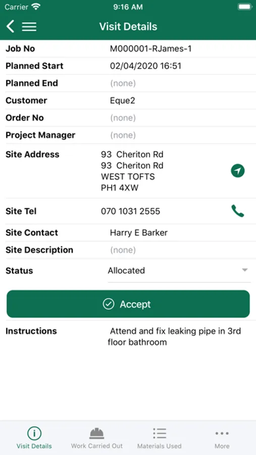 It allows job visits to be sent to site engineers' iPhones and iPads.
