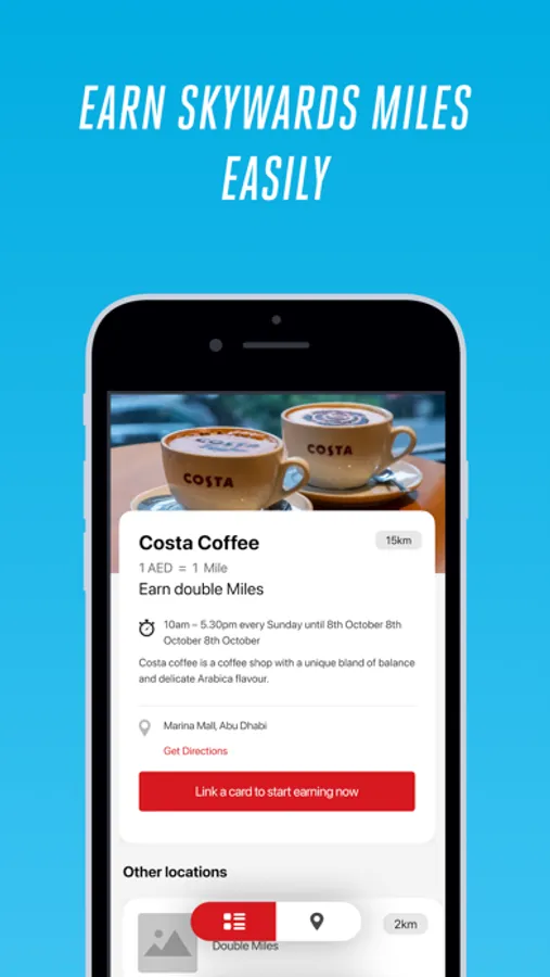 Earn Skywards Miles automatically when you shop, dine, play and unwind in the UAE. Simply download the Skywards Everyday app, log in, and link a payment card to your profile and you’re ready to earn Skywards Miles. Choose from hundreds of partners throughout the UAE.