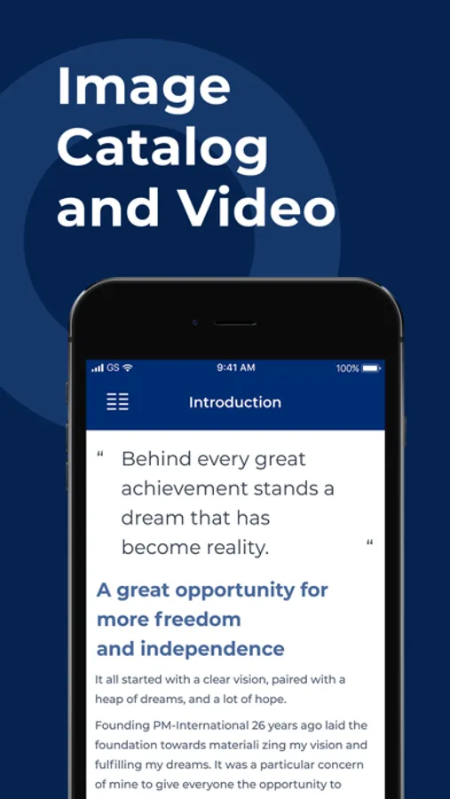 Image Catalog - our image brochure is here! No more paper catalogs and computers with videos. The Catalog is available offline. Present PM-International to any person any time!