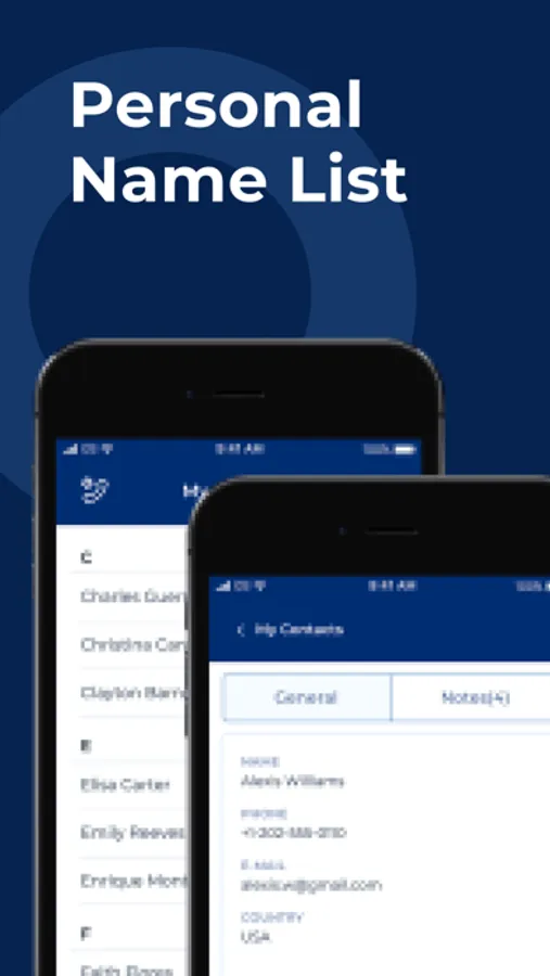 Name List - the list of your business contacts. Synchronize your contact list with the App and communicate with your contacts! Add notes to the contacts to remember all the details of your communication. Add communications and outcomes after the calls. Add reminders and the App will remind you to follow up with your business contacts.