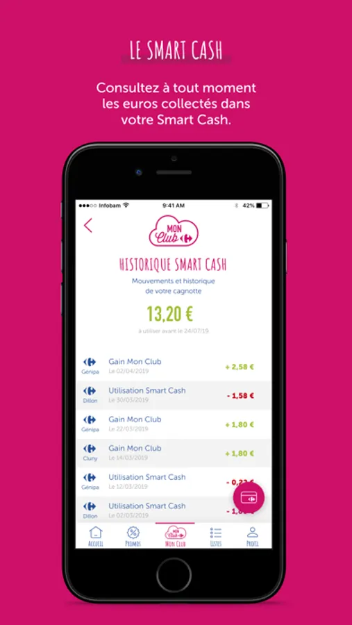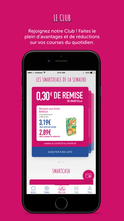 MON Club : Adhérez facilement au programme MON Club en renseignant vos données personnelles. Obtenez votre carte virtuelle directement sur votre téléphone afin de profiter d’un maximum d’avantages toute l’année ! Découvrez chaque semaine les smart deals exclusivement dédiées aux membres de MON Club. Ils vous permettront de cumuler du smart cash dans votre cagnotte et de gagner en pouvoir d’achat.