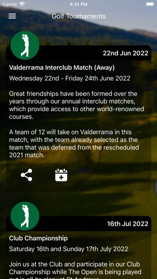 • The facility to keep up to date with all the events and latest fixtures - including the ability to book directly
