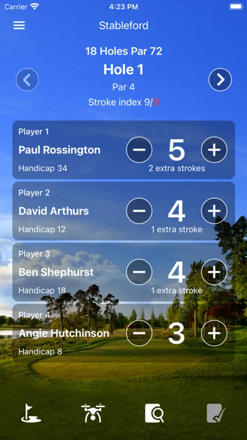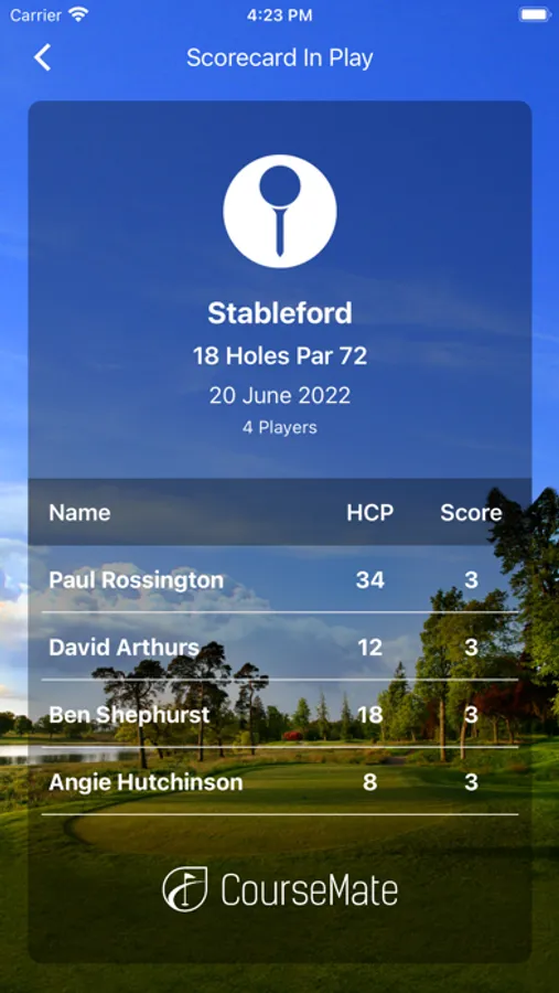 • In app Scorecards (up to 4 players) to calculate Stroke, Stableford and Match Play, making scoring a breeze – whether it’s just you or your group of 4!