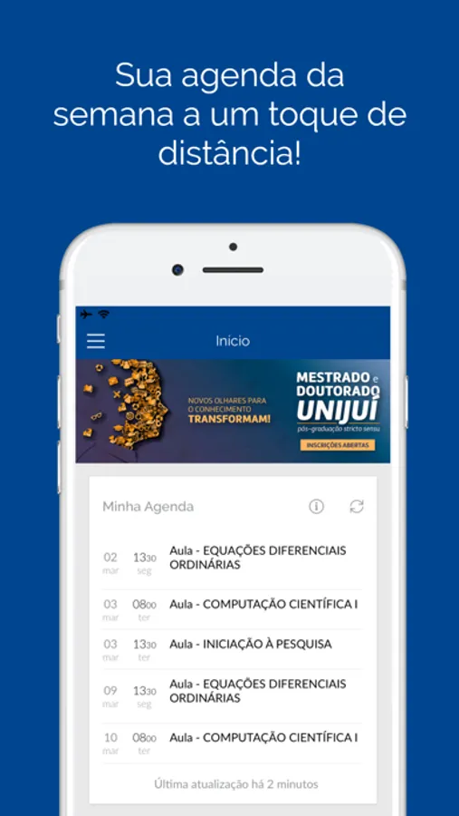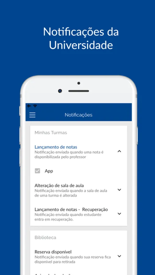 Receba notificações de notas, mudanças na agenda das aulas, pendências da biblioteca e muito mais.