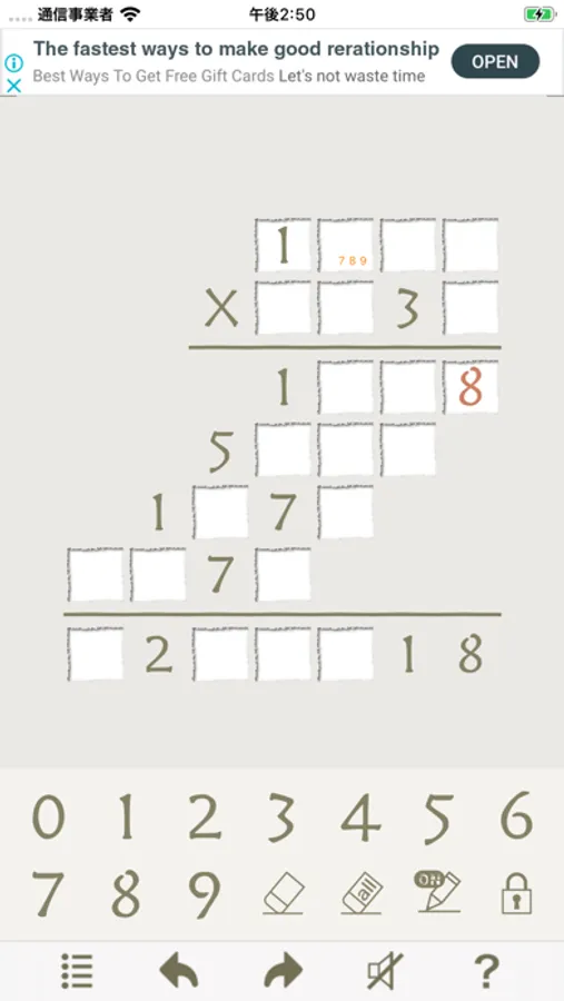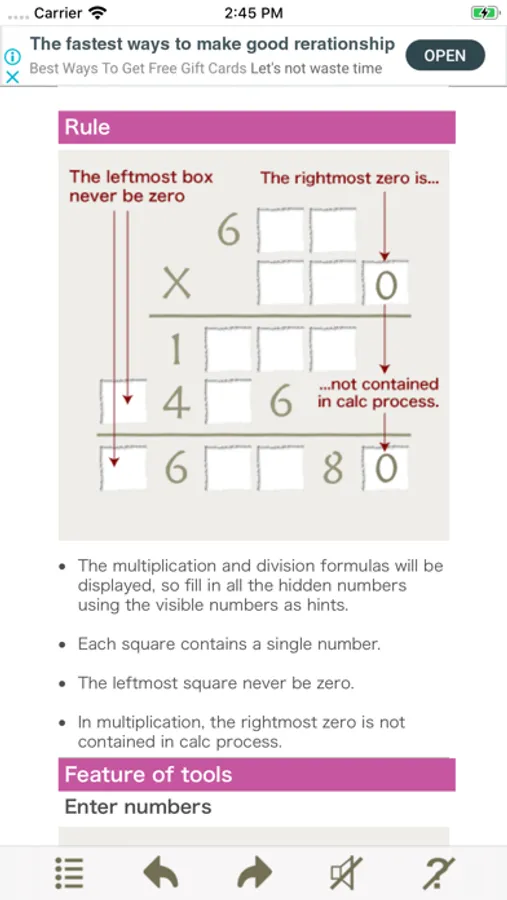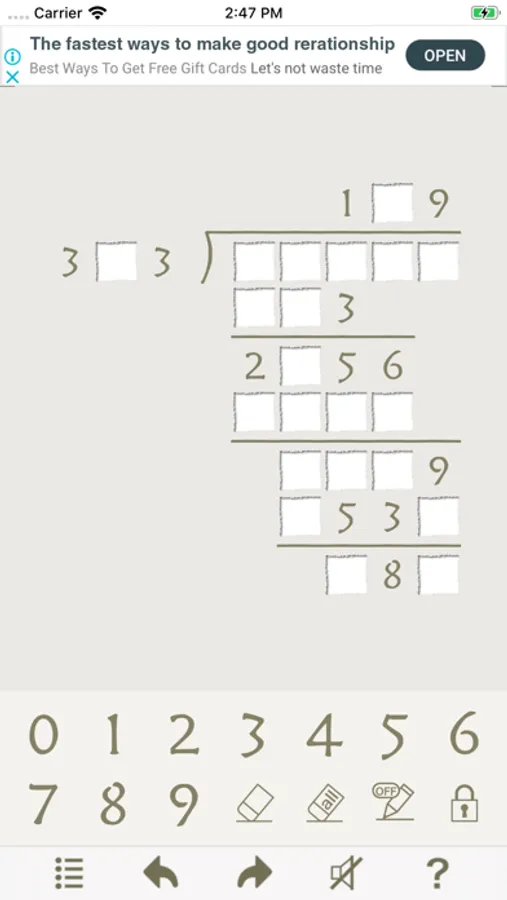The rules are simple. Fill in the blanks with numbers from 0 to 9 so that multiplication and division can be completed.