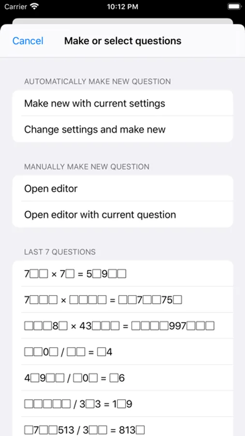 The last 50 questions created are automatically saved, and you can select and play them again later.