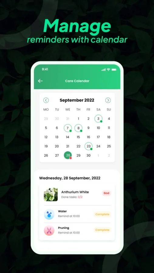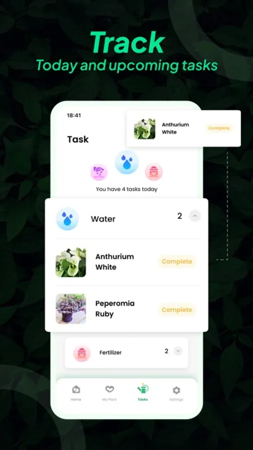 - Reminders for various plant cares (water, fertilizer, rotate, prune, repot, mist, harvest, or custom reminder)