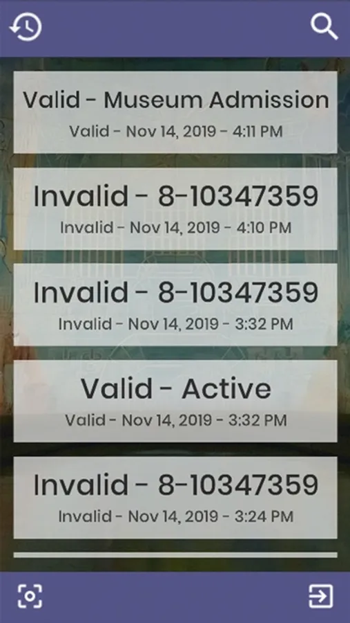 Quickly view the history for today of all the barcodes scanned in and see if they are valid or invalid.