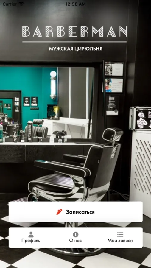 Приложение для онлайн записи в "BARBERMAN" - Цирюльню с особой атмосферой мужского клуба для истинных ценителей классического парикмахерского искусства.
