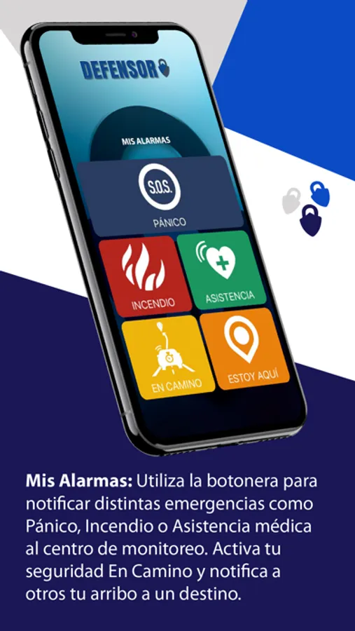 Una aplicación móvil que te protege a ti y a tus seres queridos las 24 horas, estén donde estén, conectándose a la empresa de monitoreo y seguridad Defensor. Recibe asistencia inmediata en caso de una emergencia al toque de un botón. Cuenta con servicio experto en seguridad mientras transitas a pie o en auto. Visualiza en todo momento la ubicación de tu familia o red personal, entre otras herramientas de seguridad.