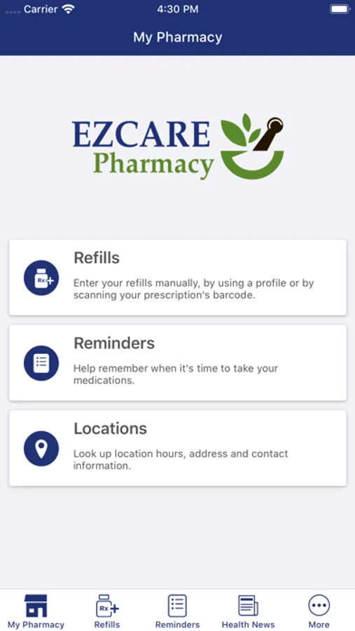 The Ezcare Pharmacy app allows you and your family to securely communicate with your local pharmacy. Refill your prescriptions with one click, get refill reminders, get discounts at your local pharmacy, get savings on brand drugs and access Pharmacist written pages that help you understand your condition or medications.