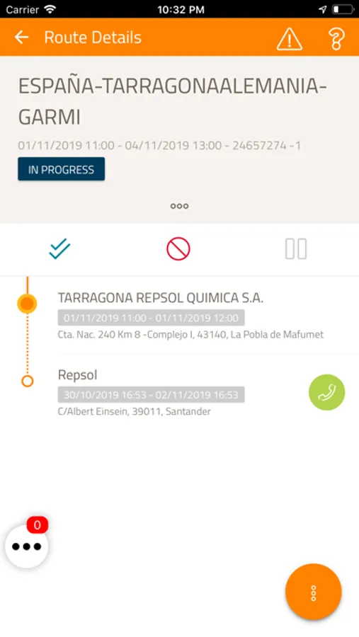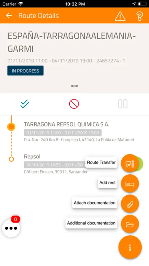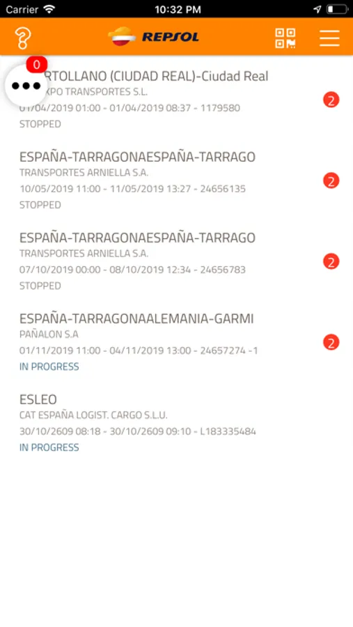 Destinada a proveedores de Repsol Química y Lubricantes de Repsol Comercial de Productos Petrolíferos para el seguimiento de transporte de mercancías. Actualización en tiempo real de los estados. Detalle de ruta: carga, trayecto, hitos y llegada a destino y detalle de parada: registro, entrada, carga / descarga efectuadas.