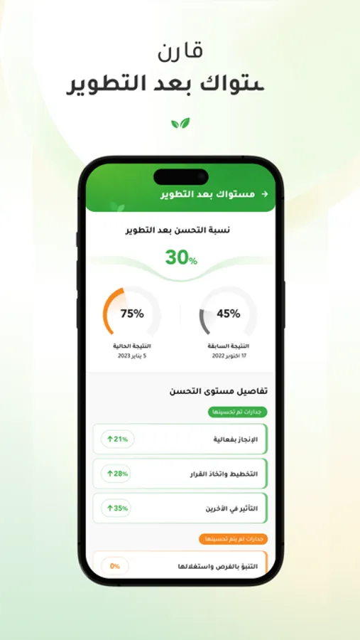 • قياس مستوى الأثر والتحسن بعد التطوير: مما يسهل عليك مقارنة مستواك قبل التطوير وبعده.