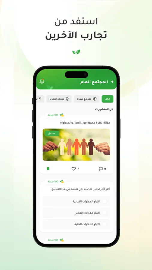 من خلال "مجتمع ذاتك" سوف تتمكن من تبادل الخبرات والاستفادة من تجارب الآخرين، والتزود من المحتوى النافع والملهم في تطوير الذات، واكتساب الحافز اللازم في رحلتك التطويرية .. انضم إلى مجتمع ذاتك، واغتنم فرصة البقاء وسط مجتمع إيجابي!