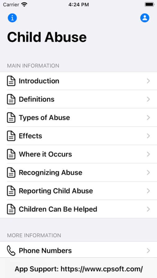 Made by the same company that brought you "The Domestic Violence App" that's used by case workers, individuals and educational establishments throughout the world. We now bring you the same quality information and organizational information about this terrible epidemic that affects more than 3 million children and generates the same amount of reports of child abuse every year.