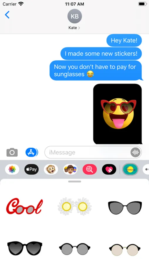 Included in this iMessage sticker pack are many styles of sunglasses. Wear one. Wear many. All for the low, low price of one dollar.