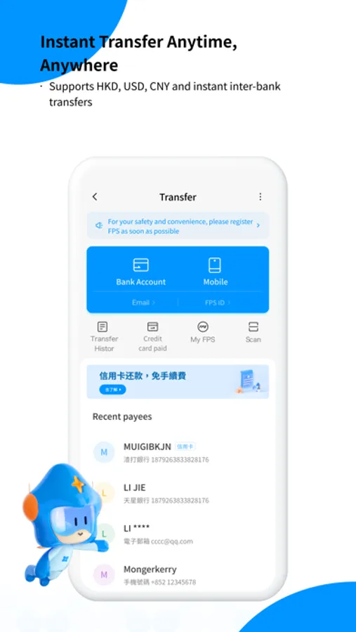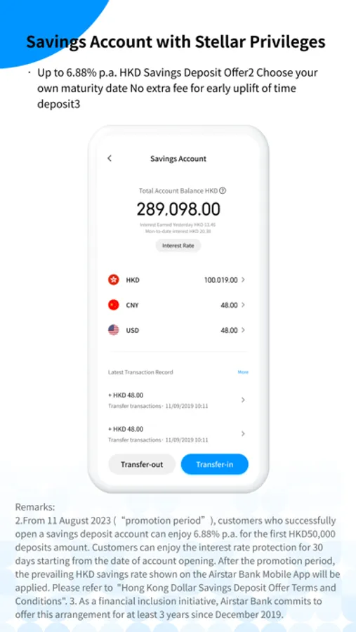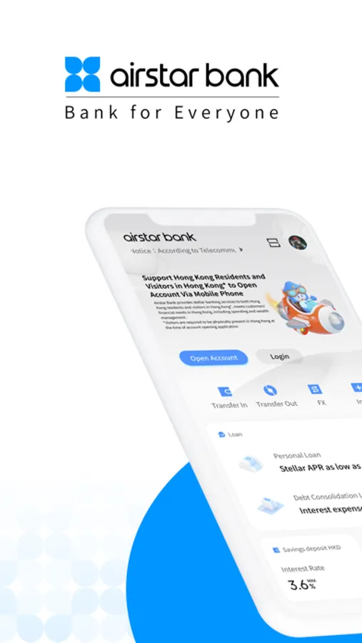 *Airstar Bank provides stellar banking services to both Hong Kong residents and visitors in Hong Kong, meets customers' financial needs in Hong Kong, including spending and wealth management. Visitors are required to be physically present in Hong Kong at the time of account opening application.
