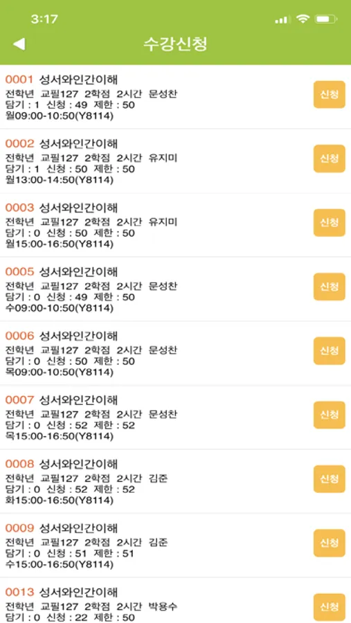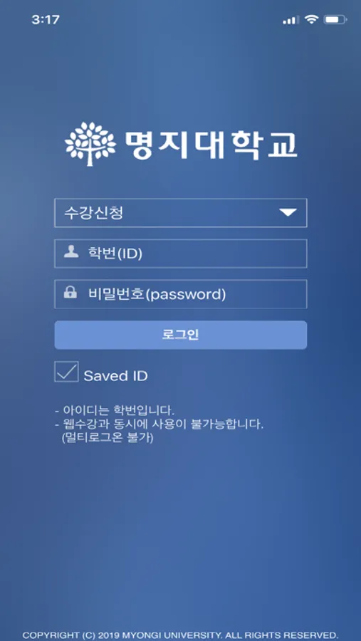■ 웹 수강신청과 중복 사용이 불가능 합니다.