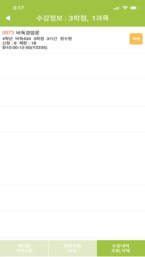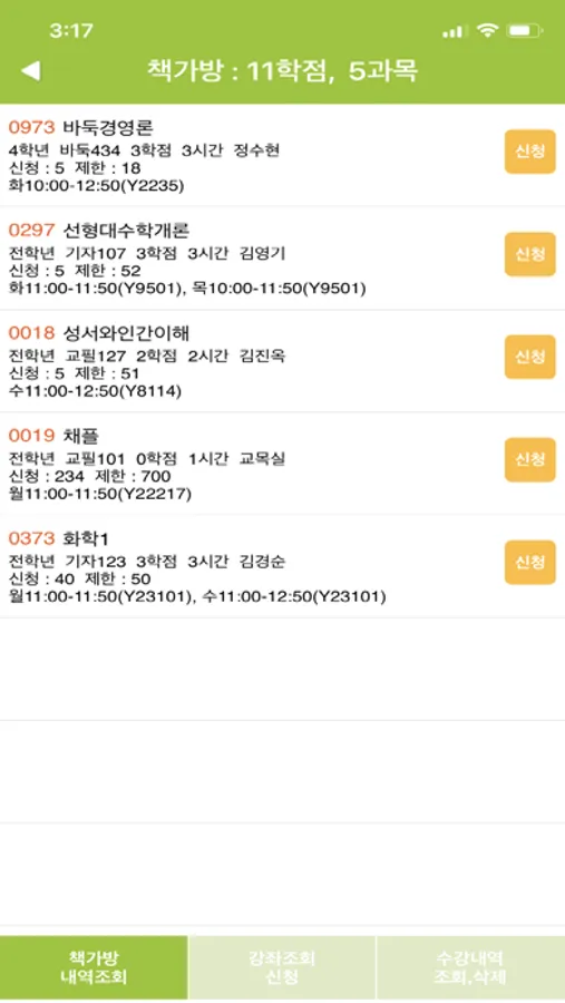 - 책가방 신청 내역조회 및 수강신청 내역조회