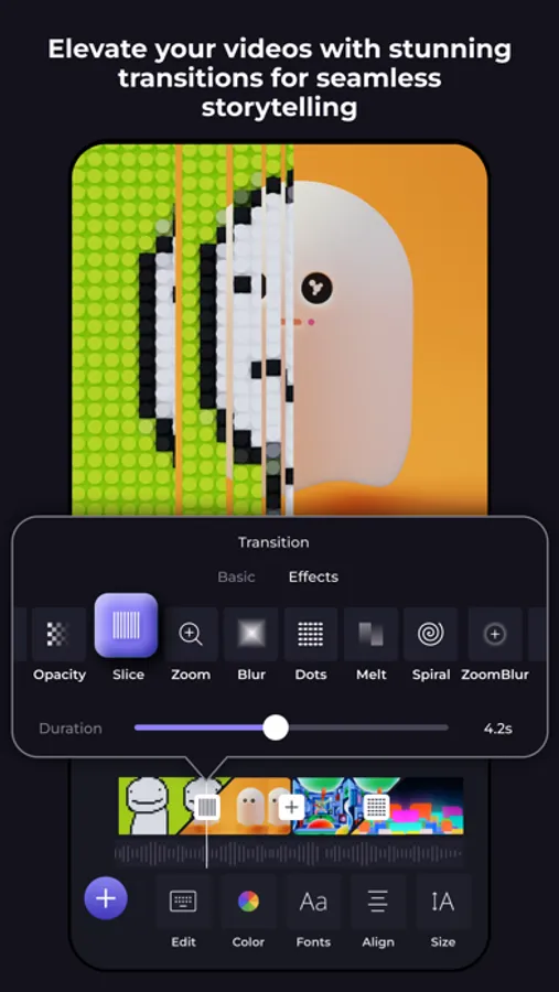 - Merge your images and video clips into a smooth slideshow with the transitions of your choice.