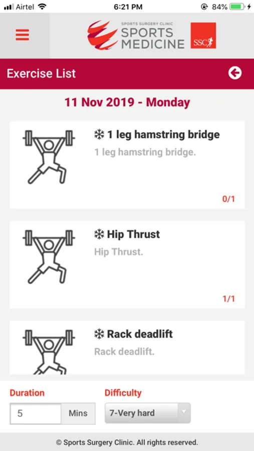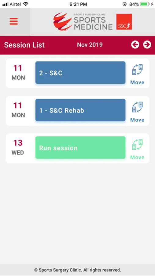 * The patient has the ability to move the session to a different day and can change the order of exercises in a session.