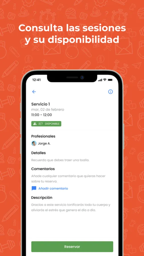 • Consulta las sesiones que ofrece el centro, así como su disponibilidad.