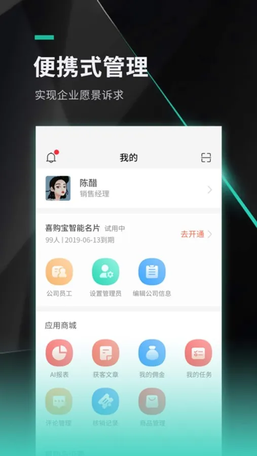 为实现企业愿景诉求、产品输出和服务能力,赋能给每个员工,提高员工工作效率,传递给每个客户,让每个用户成为有效的流量,提升企业销售业绩和品牌裂变能力。