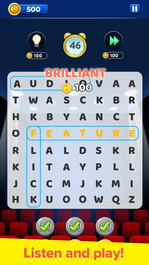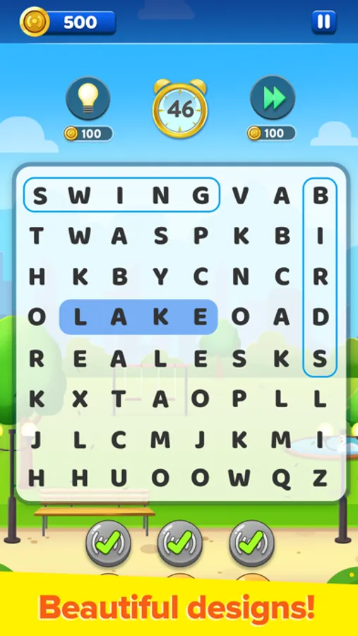 - Win coins with each word found, and use them for hints or advancing to a new level
