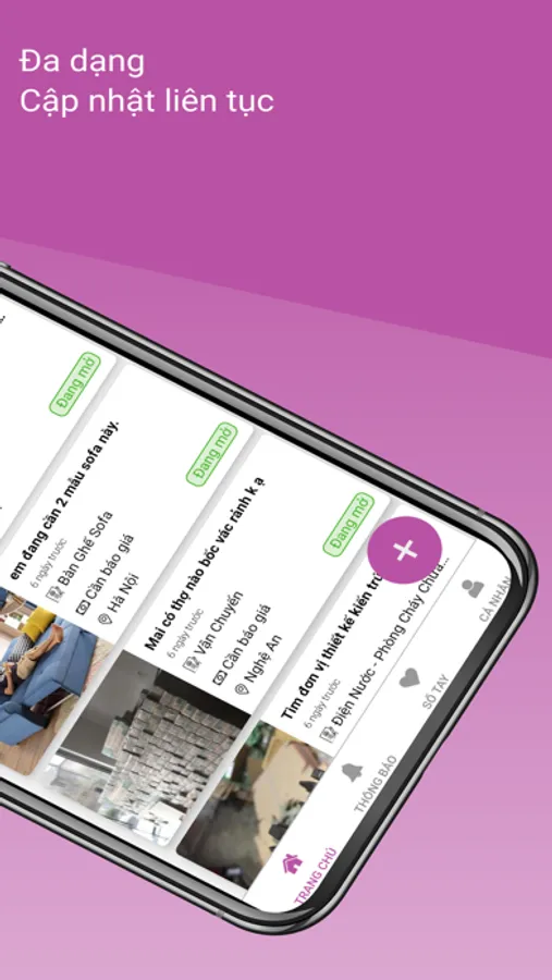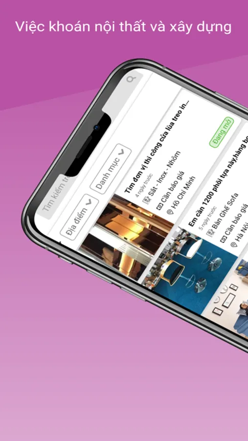 Việc làm xây dựng, thiết kế và thi công nội thất được cập nhật liên tục, gửi thông báo ngay lập tức, giúp những nhà xưởng, chuyên gia có thể kiếm thêm thu nhập bằng cách tận dụng thời gian rảnh rỗi của mình. Chỉ cần mở ứng dụng, tìm kiếm những việc khoán phù hợp với bạn và kết nối trực tiếp tới người có nhu cầu.