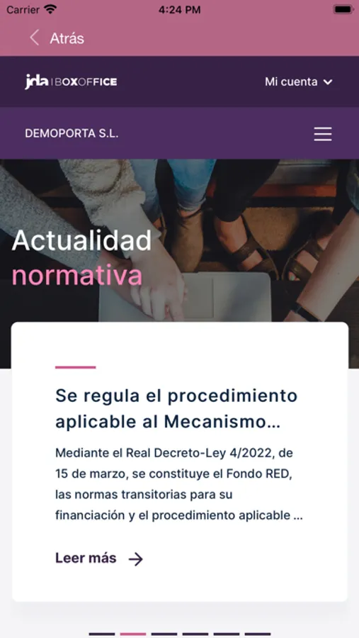 BoxOffice de JDA es la aplicación que hemos desarrollado para agilizar y poner al alcance de un clic todos los datos y documentos importantes de tu empresa. Creemos en la digitalización y llevamos más de 35 años de experiencia asesorando empresas, por ello sabemos que es importante disponer de toda la documentación en tu Smartphone estés donde estés.