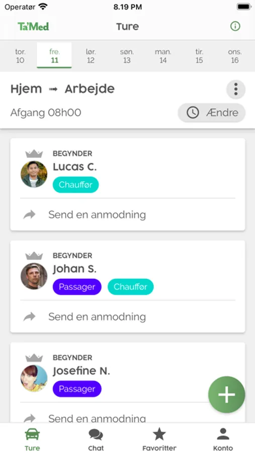 Ta’Med gør det nemt og effektivt at dele kørelejlighed med andre i hverdagen til og fra arbejde og uddannelsessted. Her kan chauffører, der har ledige pladser i bilen, finde passagerer, der skal samme vej.