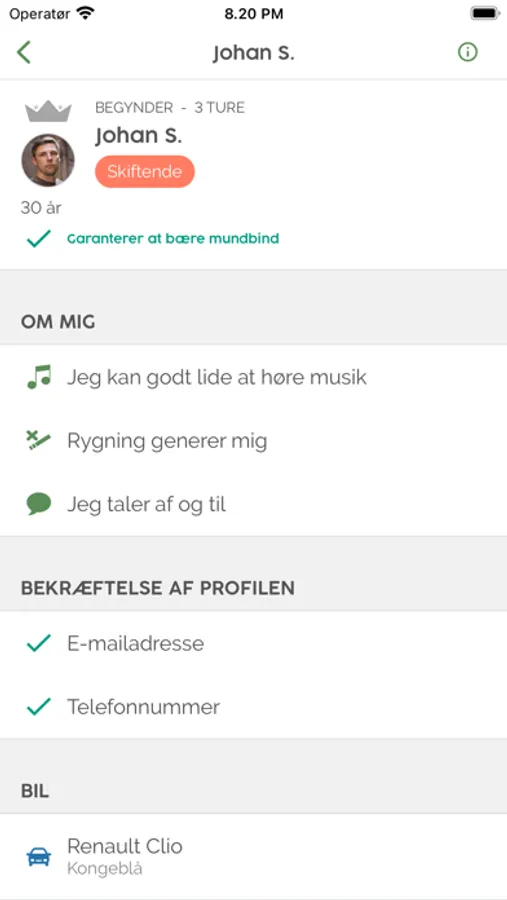 3. Vælg en chauffør eller passager ud fra profiltekster og brugernes bedømmelser.